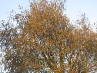 Silver birch full of catkins - clouds of pollen